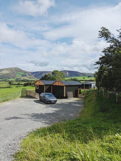 The farm buildings that are off limits to guests and the owners live at the end of the lane that leads up from the Shepard’s hut. There may also be hay bales stored close to the shepherds hut.