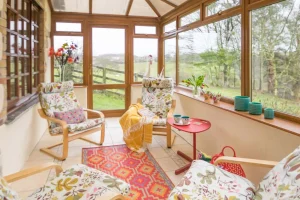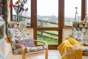 Enter via Hillside’s conservatory – a lovely place to enjoy the peaceful views down to the woods with a glass of wine in the evening. Hillside is one of our most popular dog friendly cottages, with the conservatory being ideal for drying off muddy paws.
