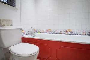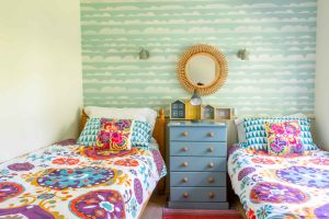 Hillside’s master bedroom has a double bed and en-suite shower room. The twin room has two 3 ft single beds (one of which can slide away to make room for a cot alongside) and an en-suite bathroom with wc, basin and bath with shower over.