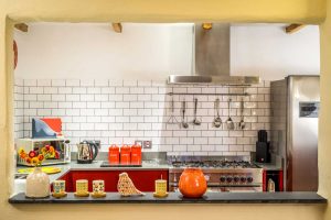 The kitchen is superb, slate floor with red gloss units with granite work tops, an American style fridge freezer and a gas range cooker equipped with everything you might need to whisk up a family feast or breakfast fry up. A large antique pine dining table is perfect for family dining or card games.