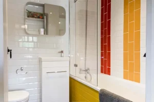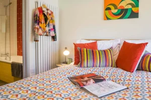 There are two bedrooms: one double with king size Ercol bed and an ensuite bathroom (shower over the bath). The second bedroom also has an ensuite shower room and two single beds, one of which can hide away and leave room for a cot.