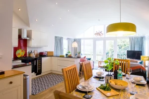 There’s a well equipped fitted kitchen with granite worktop and bar to lean on whilst you chat to the chef cooking up a fantastic holiday breakfast fry up or supper with the fish you caught that day at Mevagissey!
