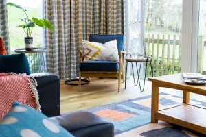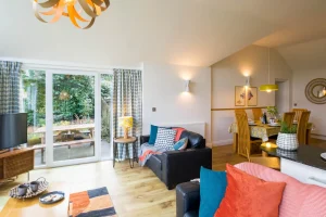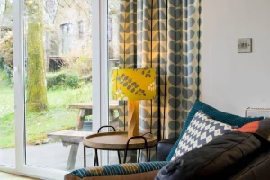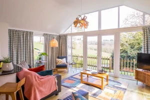 The first thing you’ll notice is the view: Well Close has glass windows from floor to ceiling to take advantage of the view across the garden, meadow and woods beyond. It’s also a superb place to stay if you enjoy bird and wildlife watching – many different species visit Bosinver throughout the year.